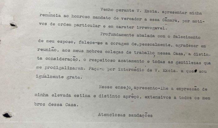 Renúncia de vereadora em 1952 é resgatada pela Câmara de Manhuaçu