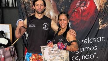Felipe Fagundes e Ana Paula são graduados em exame de Muaythai no RJ