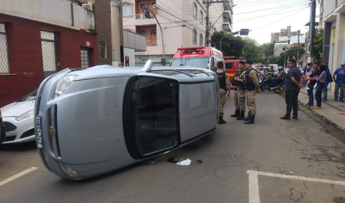 Carro tomba após colisão no bairro Coqueiro em Manhuaçu