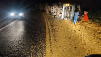 Acidente entre caminhão e van deixa trânsito lento na BR-116, em Inhapim