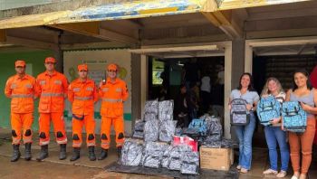 Bombeiros entregam kits escolares a alunos do CAIC em Manhuaçu