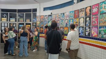 Exposição de desenhos atrai a atenção de visitantes na Rodoviária