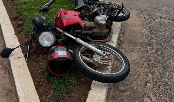 Acidente entre moto e Uno deixa rapaz ferido no trevo de Abre Campo