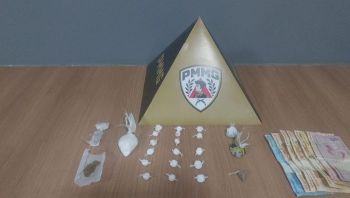 Dupla é pressa após arremessar sacolas com drogas e dinheiro em área de pasto