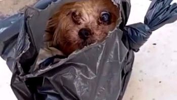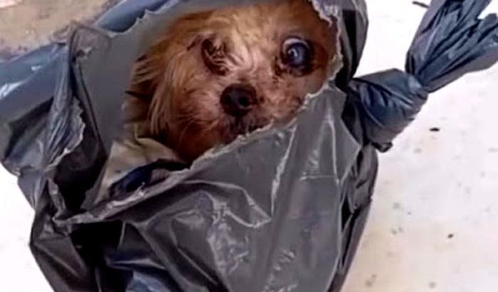 Cachorro é resgatado após ser encontrado em saco de lixo em Espera Feliz