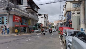 Pedestres arriscam na travessia de rua no centro da cidade de Manhuaçu