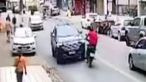 Carro sobe calçada e atinge loja de roupas infantis na Antônio Welerson