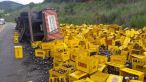 Carreta carregada com cerveja tomba na BR-116