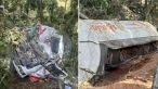 Caminhão com 22 mil litros de óleo diesel tomba e motorista fica ferido