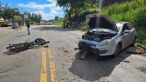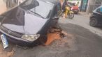 Asfalto cede e veículo cai em buraco na rua Luís Cerqueira, no centro de Manhuaçu