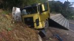 Caminhão carregado com melancias tomba na BR-116