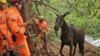 Egua é resgatada de rio pelo Corpo de Bombeiros em Manhuaçu