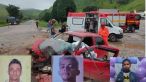 Acidente entre dois carros e uma carreta deixa três mortos e três feridos na BR-116