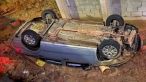 Carro cai em barranco de obra de muro no Santa Terezinha