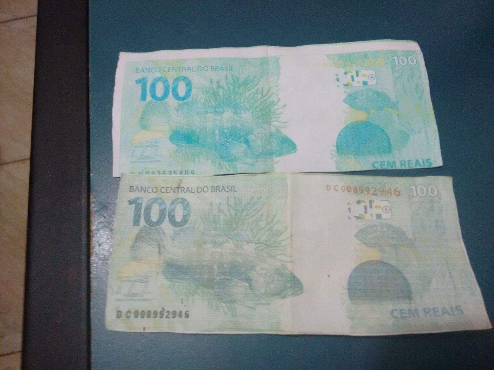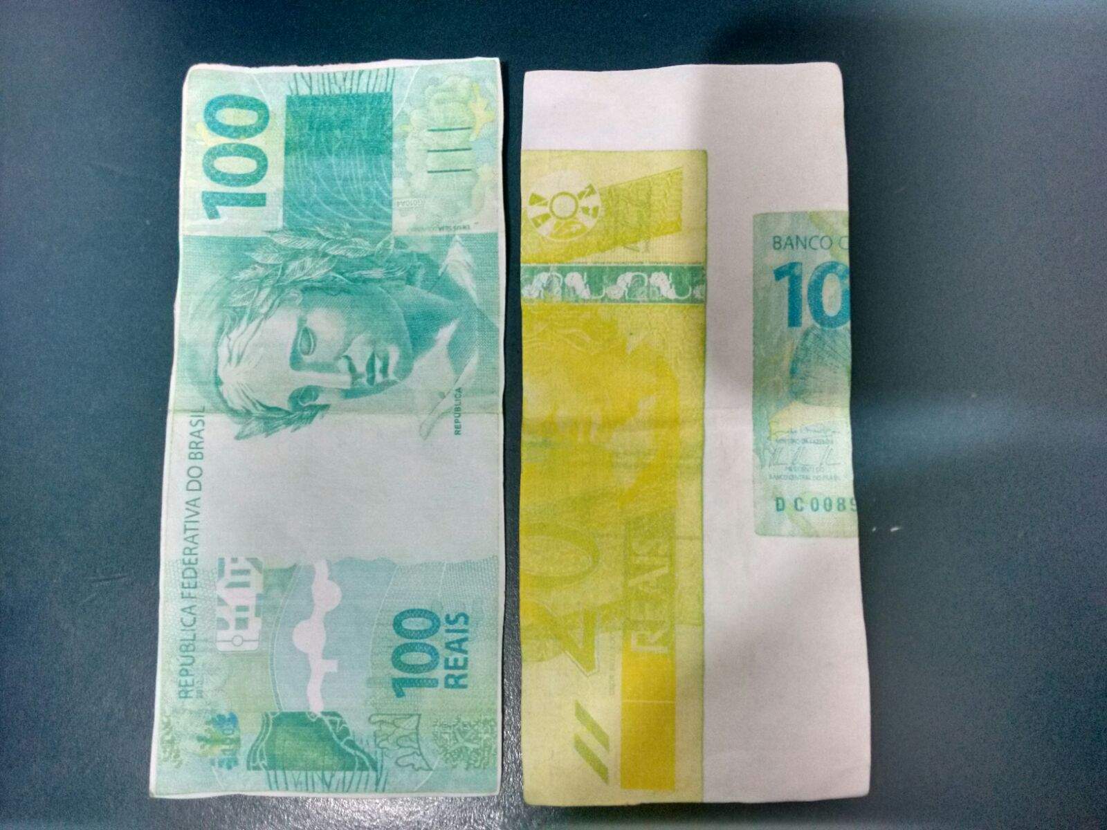 Ao pagar, um dos homens abaixou somente metade do vidro e entregou as duas cédulas. A falsificação é bem grosseira e ele percebeu na hora, mas os autores saíram em alta velocidade.