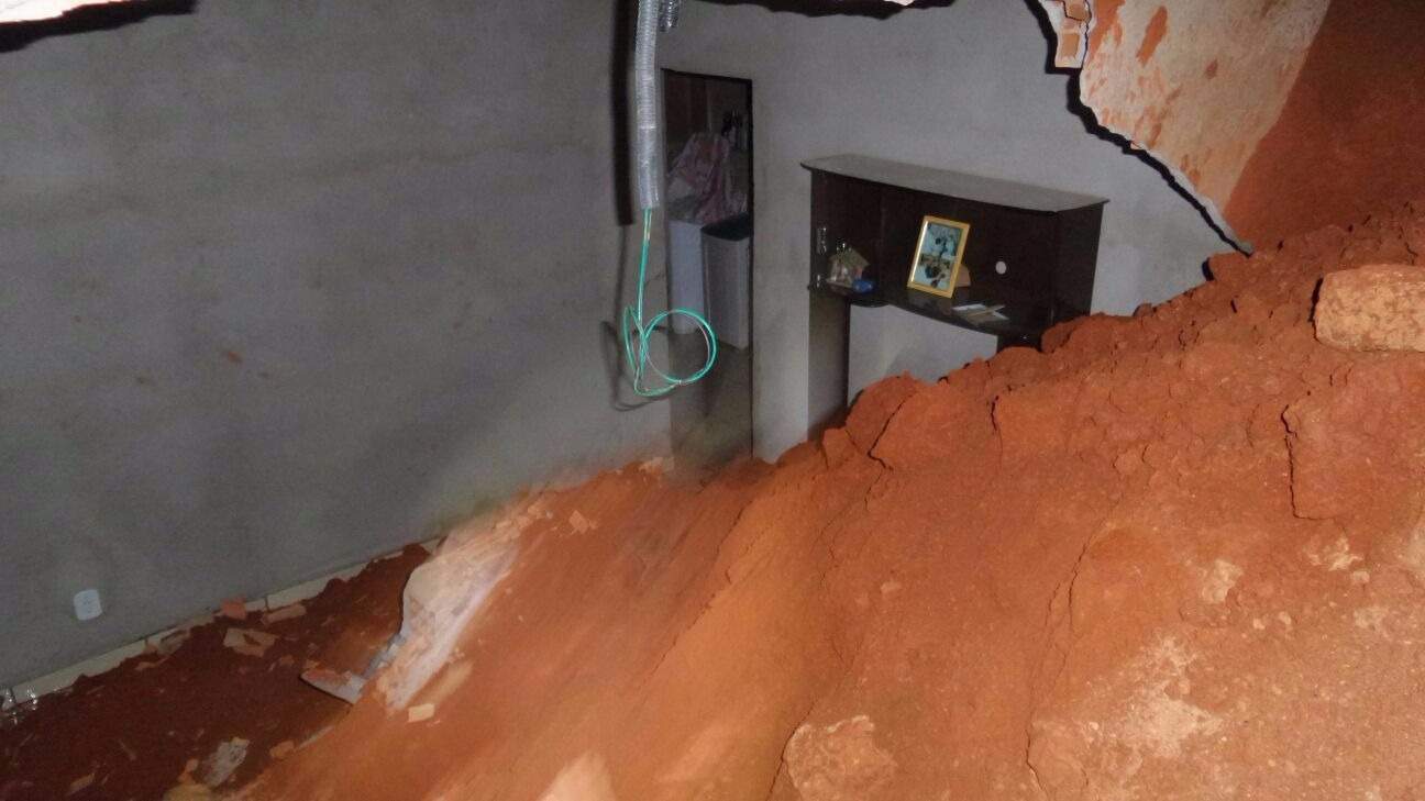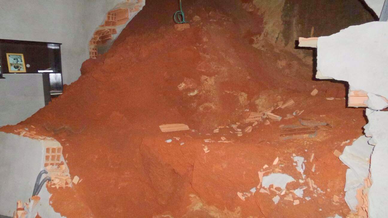 RAUL SOARES (MG) - Terra e lama invadiram parte de uma residência em Raul Soares, no início da noite deste último domingo (24/01), no bairro Jardim.