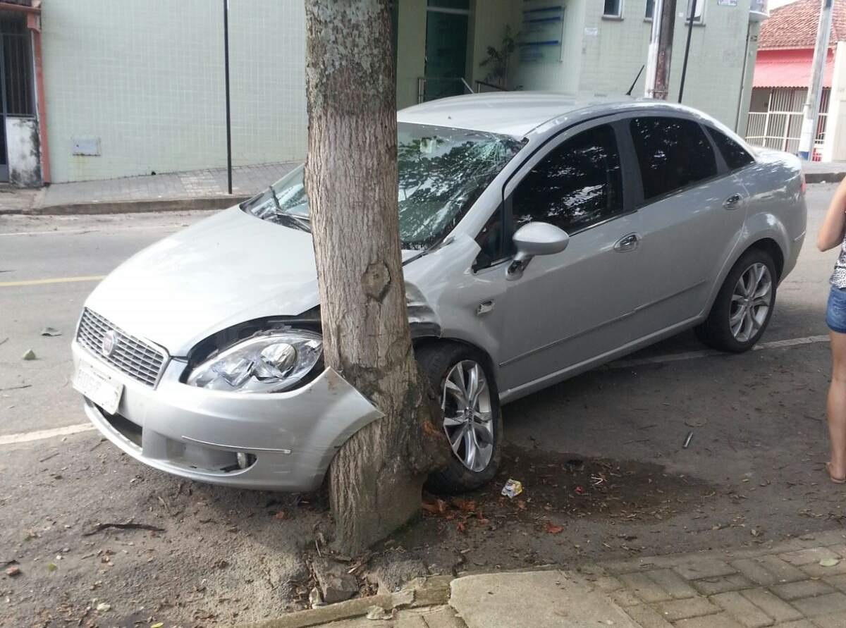 MANHUAÇU (MG) - A Polícia Militar apreendeu o Fiat Linea que bateu numa árvore na Praça Doutor César Leite, na tarde de domingo, 24/01, em Manhuaçu. O motorista fugiu do local.