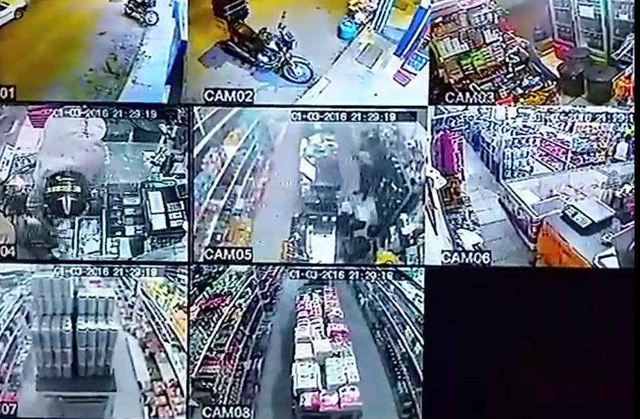 Os bandidos chegaram numa motocicleta e não retiraram os capacetes do rosto. Eles renderam o comerciante e uma funcionária e levaram um aparelho celular, 100 reais em dinheiro e um cordão de ouro com crucifixo.