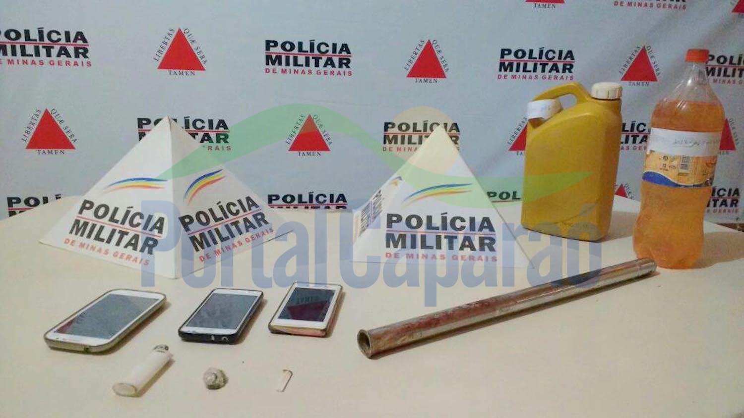 Os policiais de Lajinha ainda apreenderam os celulares, uma bucha e um cigarro de maconha, o isqueiro e dois vasilhames de gasolina usados para colocar fogo no veículo.