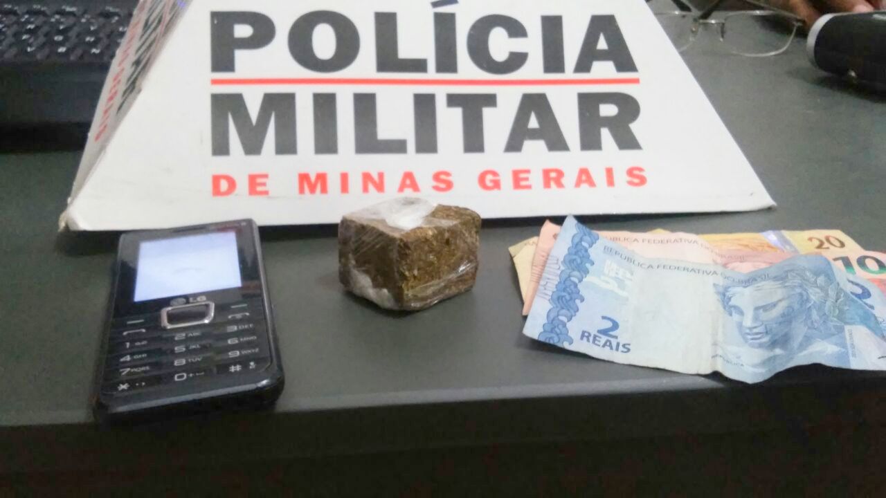 Com os dois suspeitos foram apreendidos 33 reais. O objeto arremessado era na realidade um tablete de maconha.