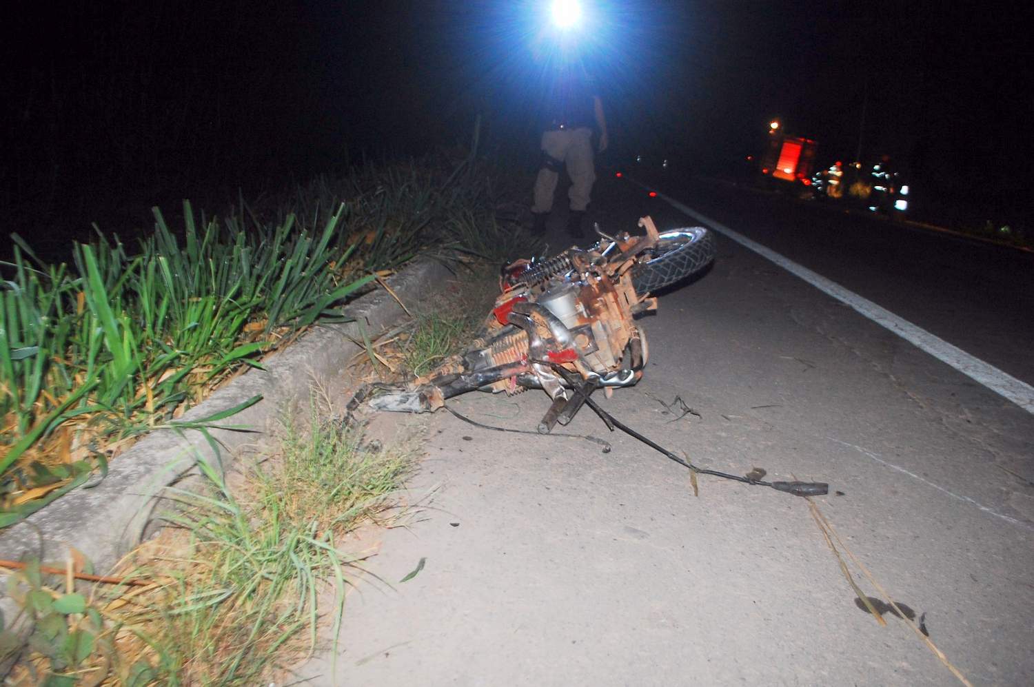 Com o impacto, a motocicleta partiu-se ao meio e o piloto Romário Alves Monteiro, 20 anos, morreu no local. O Golf saiu da pista e caiu em uma ribanceira. Os dois ocupantes do carro não sofreram ferimentos.