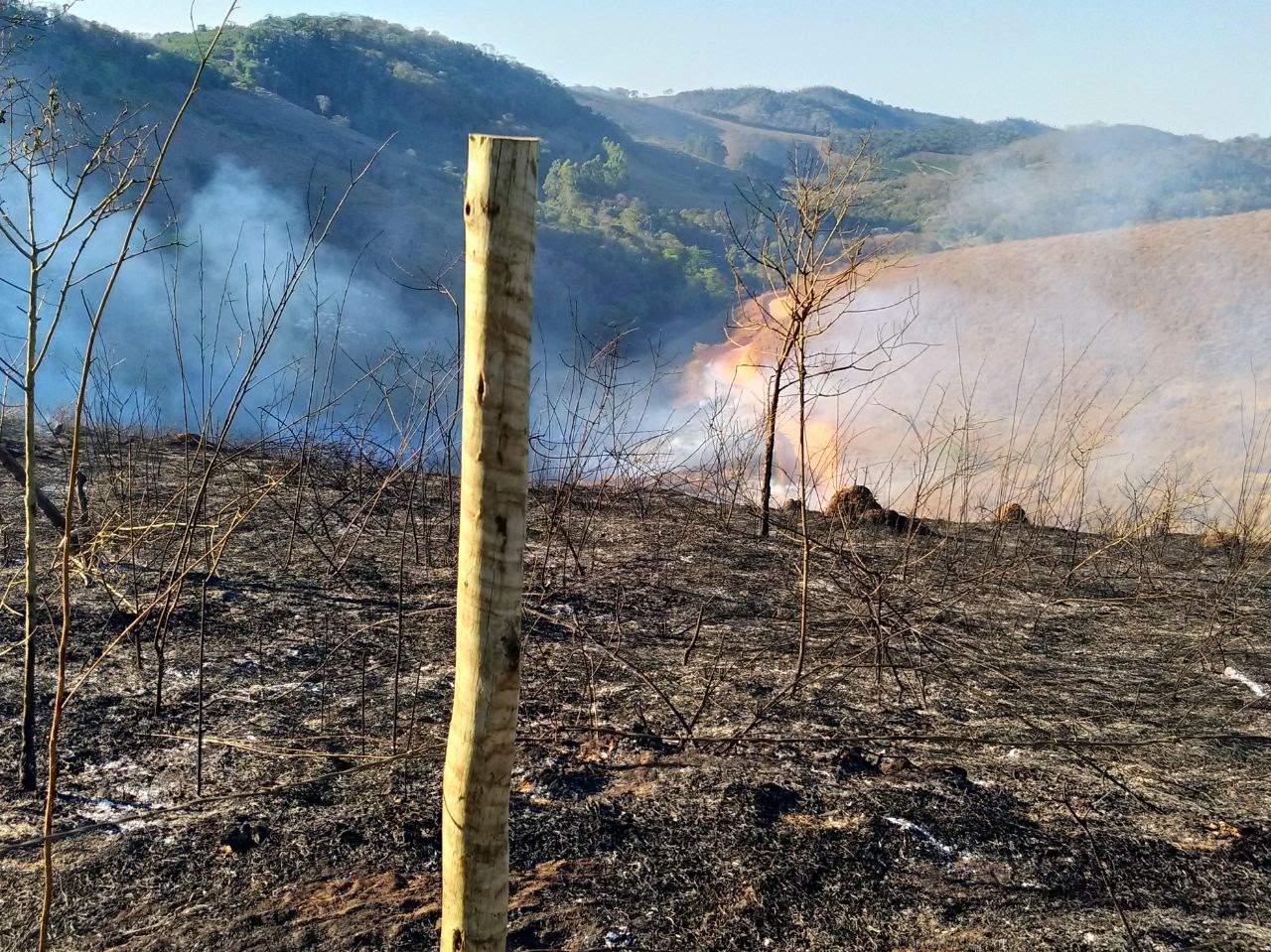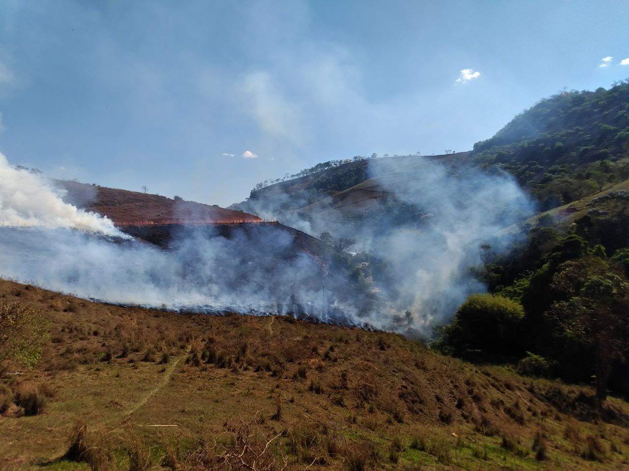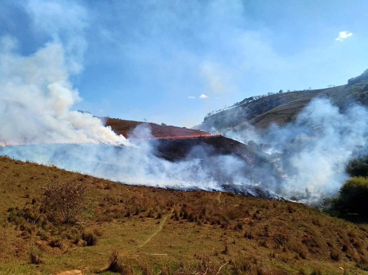 O fogo começou numa área de pastagem utilizada para criação de gado e cavalos. Os animais foram retirados. As chamas se alastraram e tomaram grandes proporções atingindo uma mata e lavoura de café.
