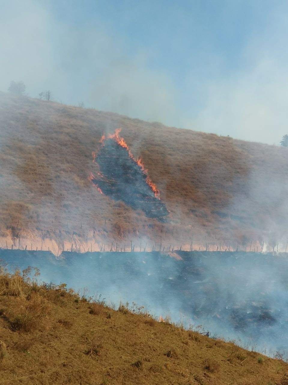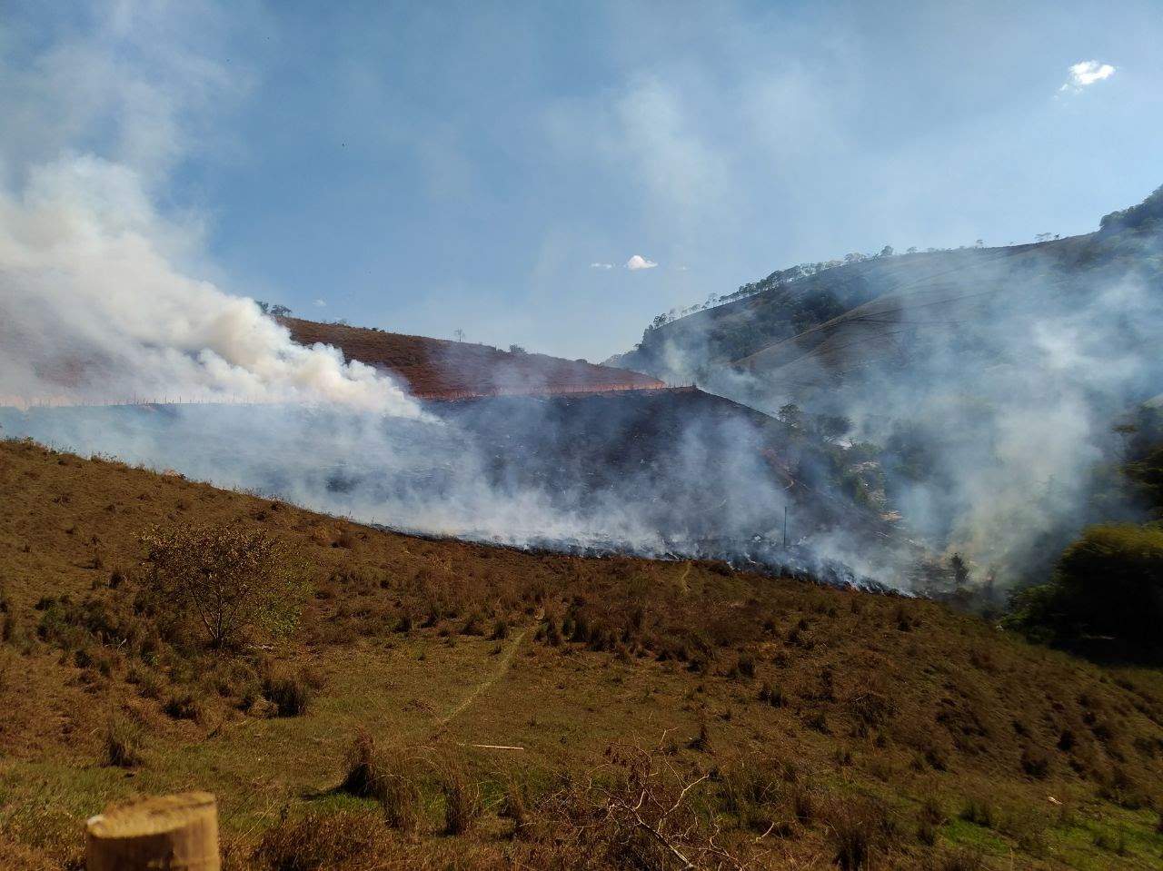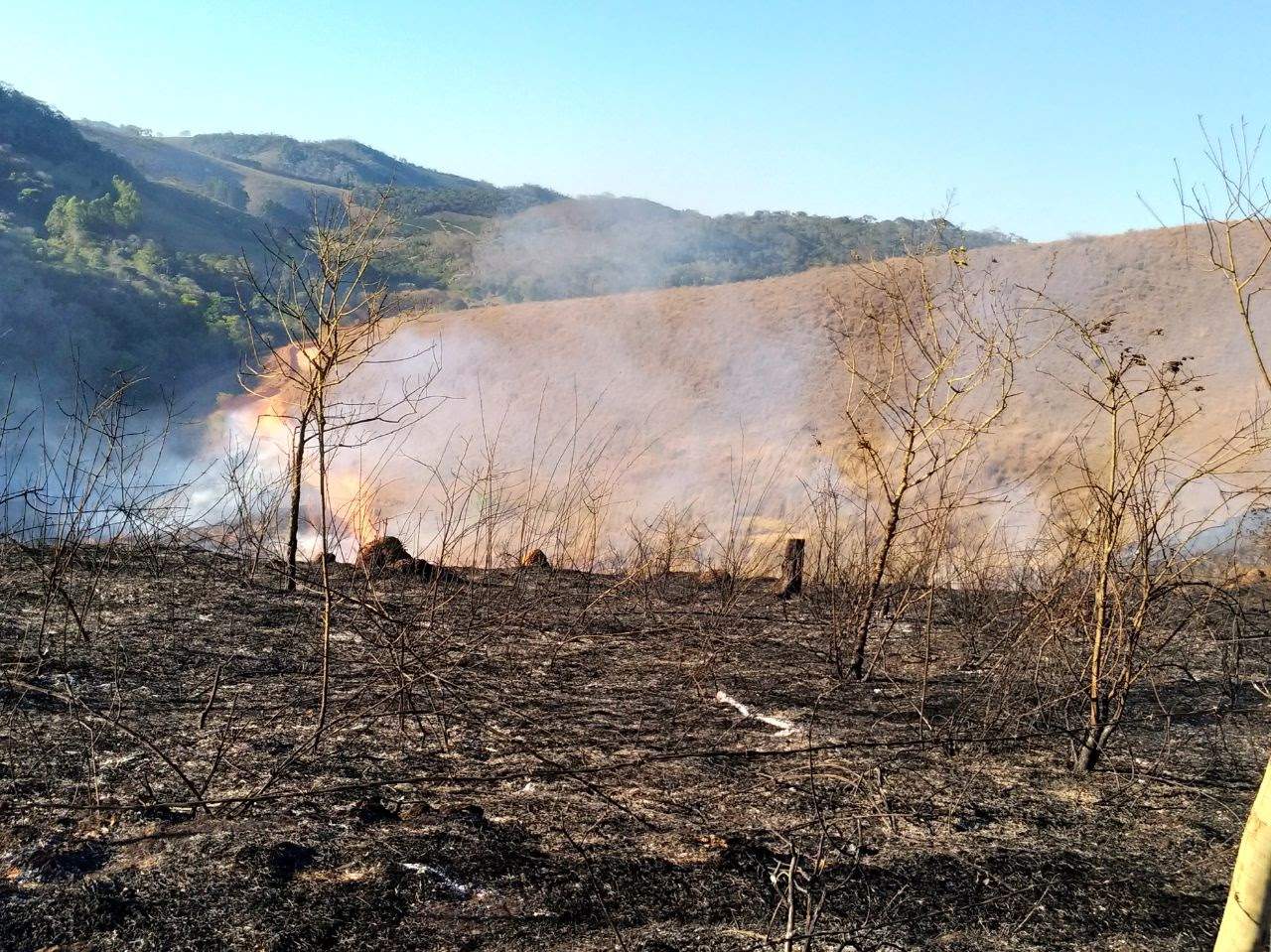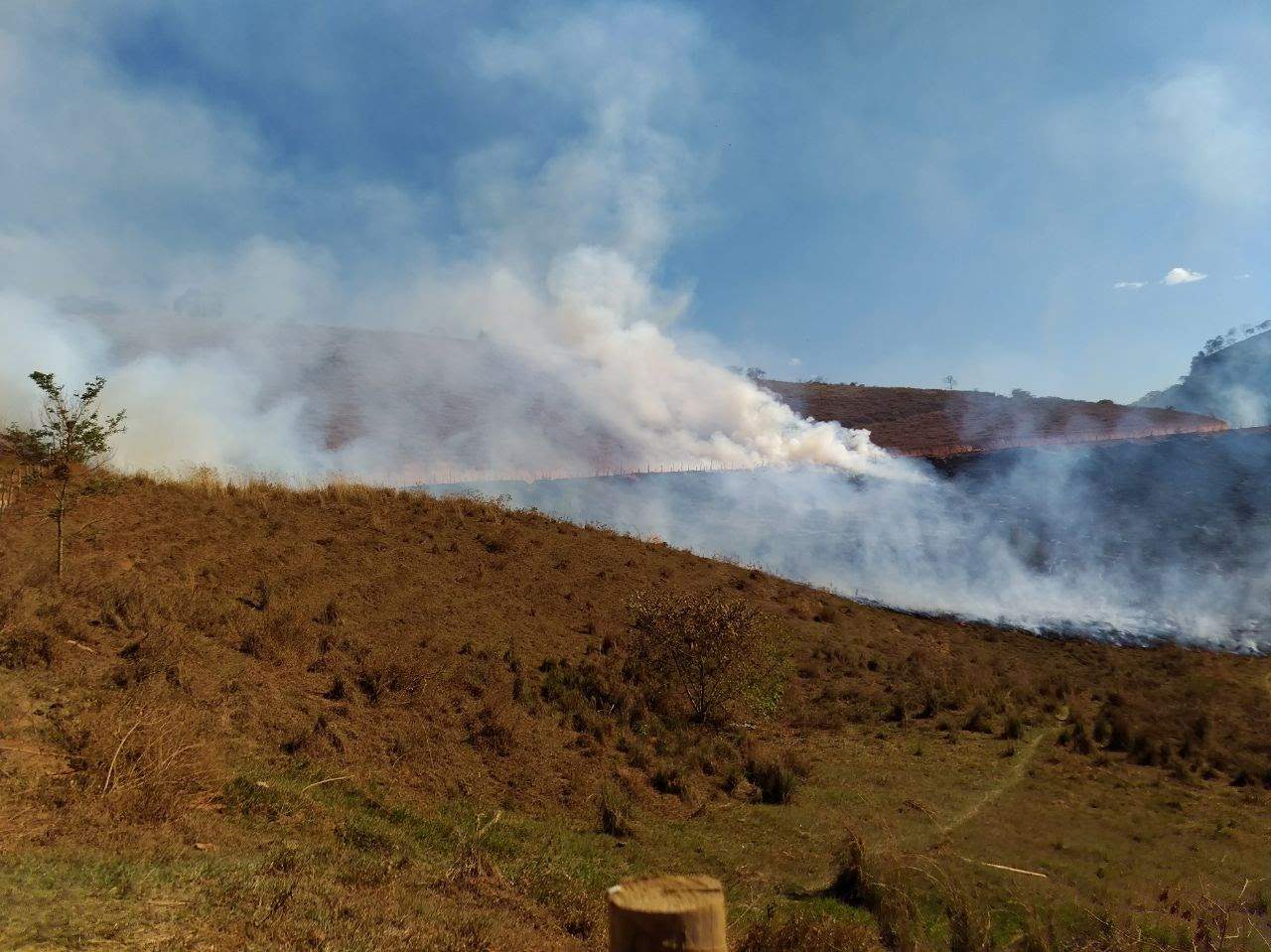 O fogo começou numa área de pastagem utilizada para criação de gado e cavalos. Os animais foram retirados. As chamas se alastraram e tomaram grandes proporções atingindo uma mata e lavoura de café.