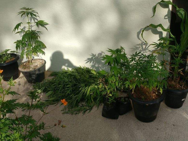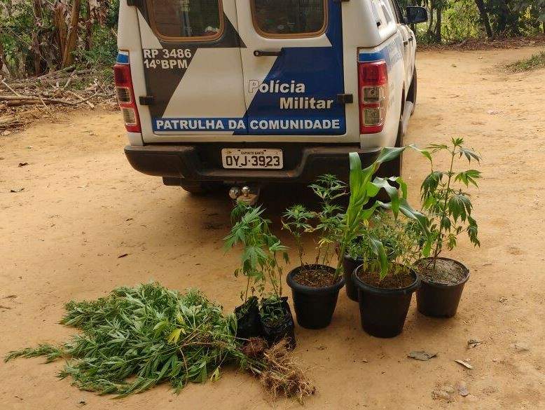 Os policiais abordaram um morador e ele mostrou-se muito apreensivo. Ao fazerem uma busca ao redor da casa, encontraram pés de maconha plantados e sendo cultivados em vasos. Acharam também sementes, material para produção, secagem e uso de maconha.