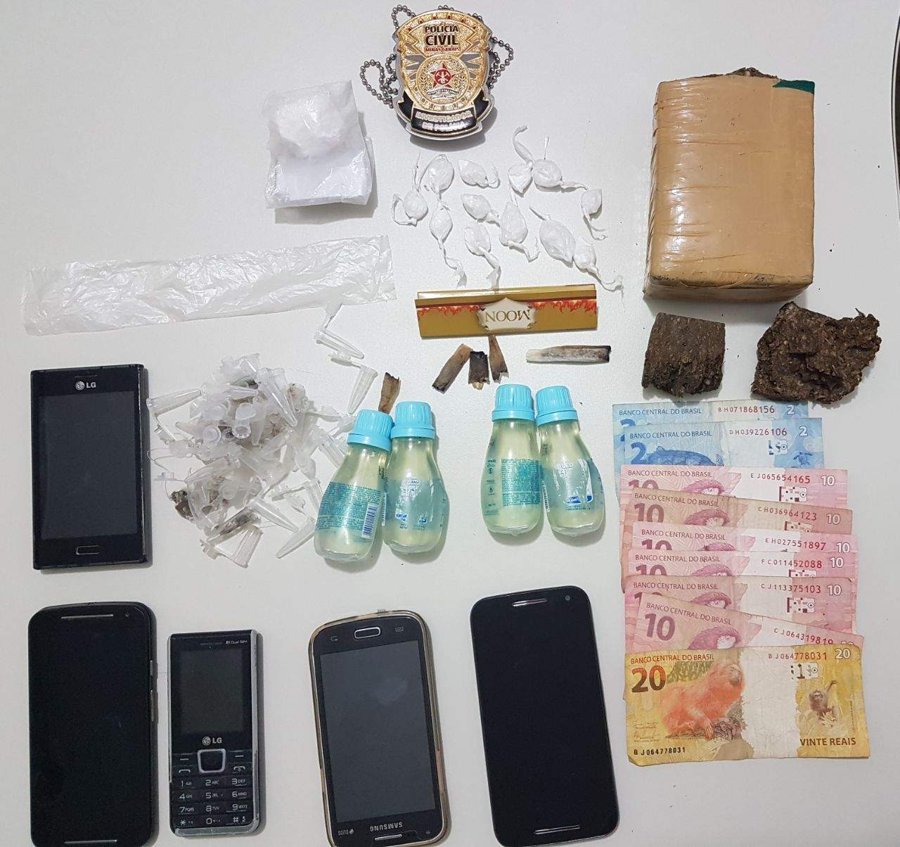 Segundo a Polícia Civil, foram localizadas grande quantidade de drogas, objetos utilizados no tráfico de drogas, telefones celulares e dinheiro.