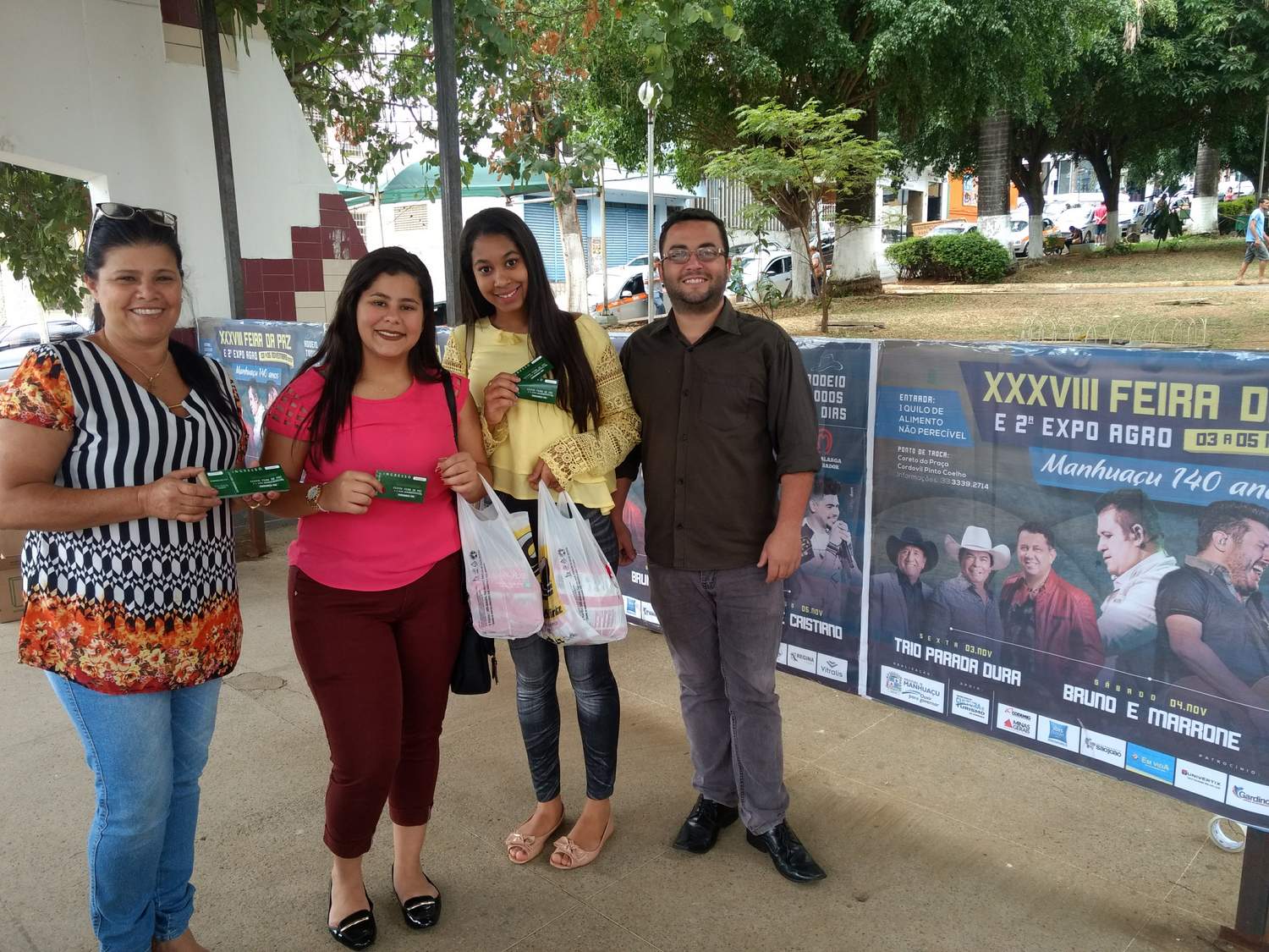 Logo na manhã desta sexta-feira, começaram as trocas de alimentos por ingressos. Duas jovens de Caputira foram as primeiras a buscar os convites. A Secretária de Turismo, Gena Clara, e o diretor de Turismo, Udson Caldeira, fizeram a entrega inicial.