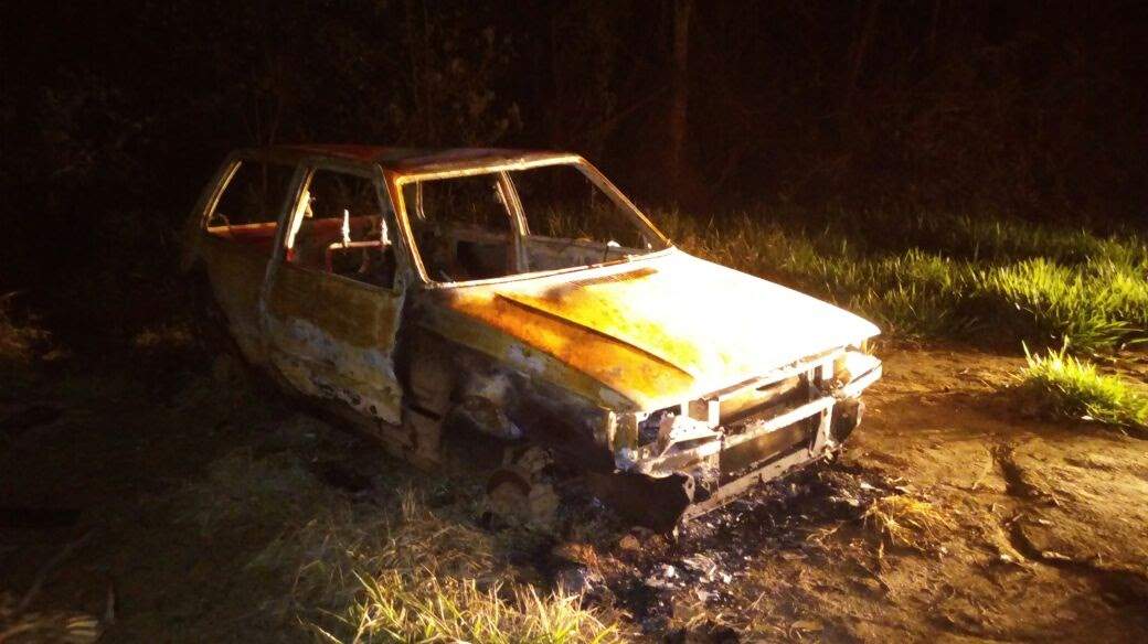 Policiais militares foram para o local e encontraram o carro todo queimado. Não foi possível precisar a hora em que foi queimado, já que a lataria do veiculo estava fria.