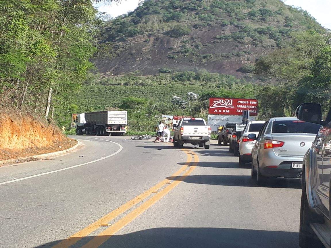 A motocicleta e um caminhão trafegavam no sentido Manhuaçu-Realeza quando o condutor da moto perdeu o controle da direção e colidiu frontalmente com veículo Gol que seguia em sentido oposto.
