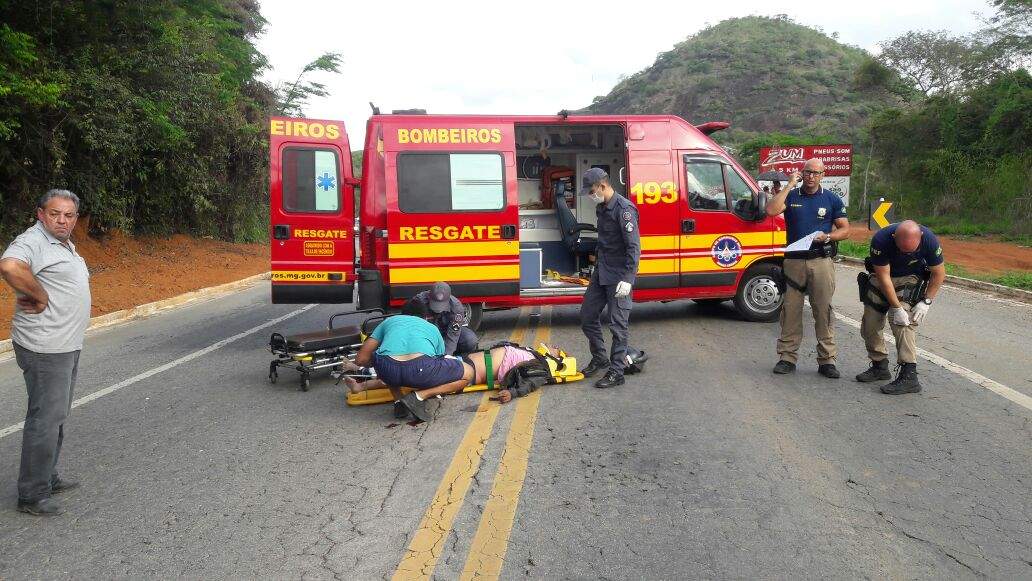 O condutor da motocicleta foi imobilizado e encaminhado pelo Corpo de Bombeiros de Manhuaçu para a Unidade de Pronto Atendimento (UPA).