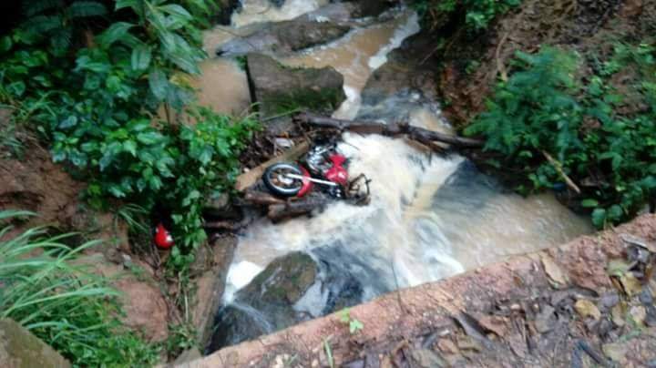 ALTO JEQUITIBÁ (MG) - Durante a chuva da noite de segunda-feira, 20/11, uma motocicleta caiu de uma ponte no Córrego Jacutinga, na zona rural de Alto Jequitibá. O piloto foi socorrido e o passageiro morreu no local.