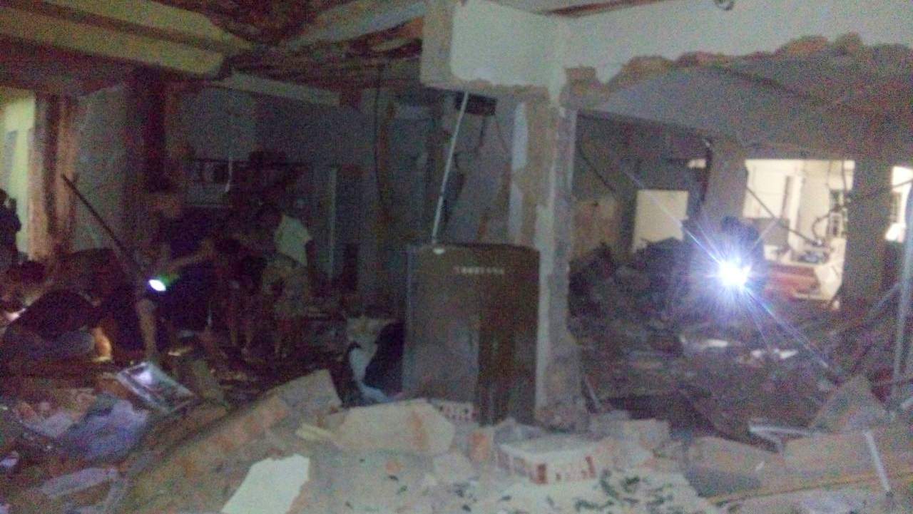 A explosão deixou muitos vidros estilhaçados, além de portas e equipamentos totalmente quebrados. O prédio ficou muito destruído.