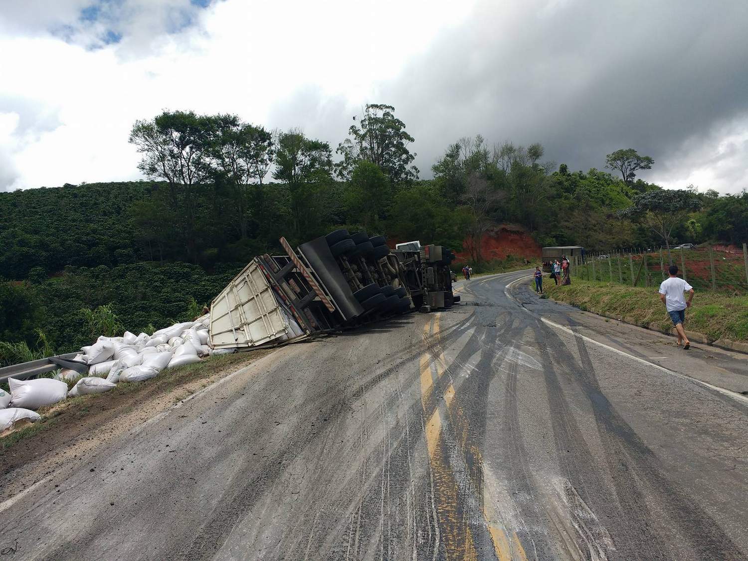 Uma equipe do Corpo de Bombeiros de Manhuaçu, chefiada pelo Sargento Loures esteve no local. O motorista da carreta foi socorrido com escoriações nos braços, corte na cabeça e suspeita de fratura na mão esquerda.