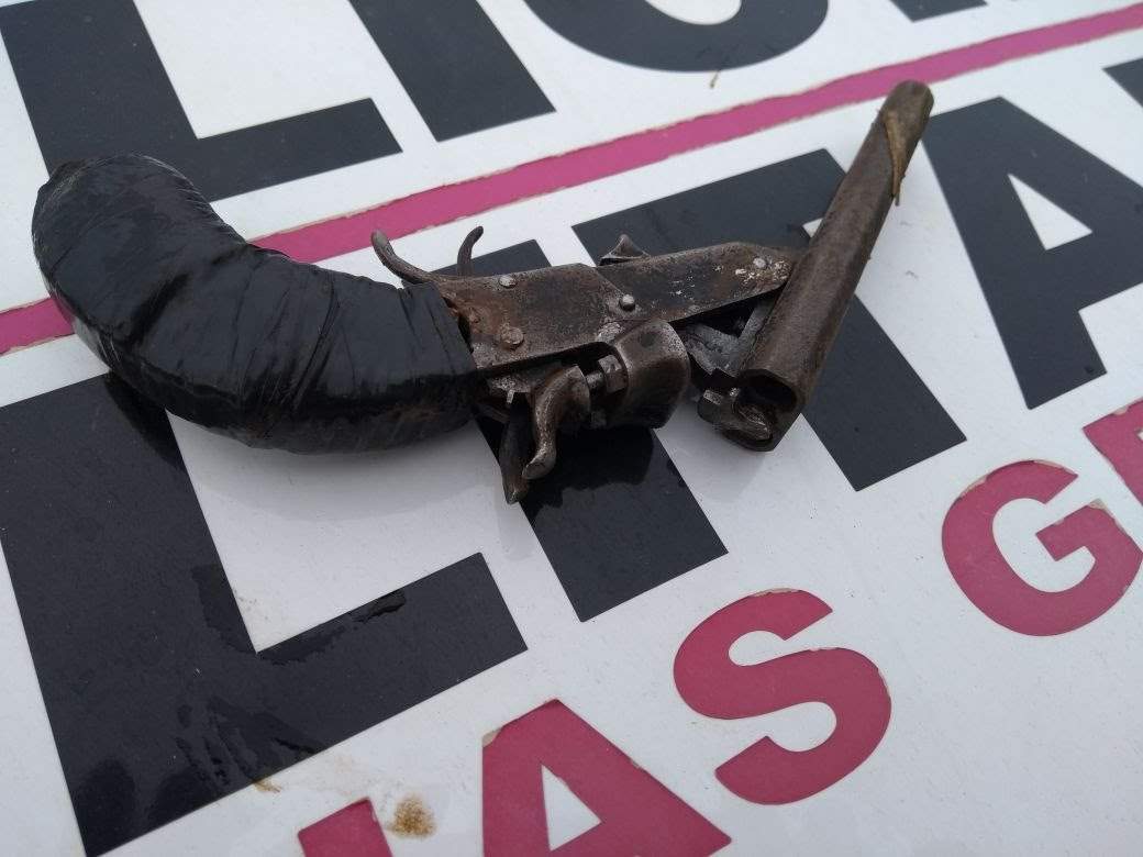 Eles tentaram escapar da abordagem policial. Primeiro procuraram fugir por um matagal e depois pelo quintal de residências do distrito. Um deles ainda estava com a garrucha usada no roubo.