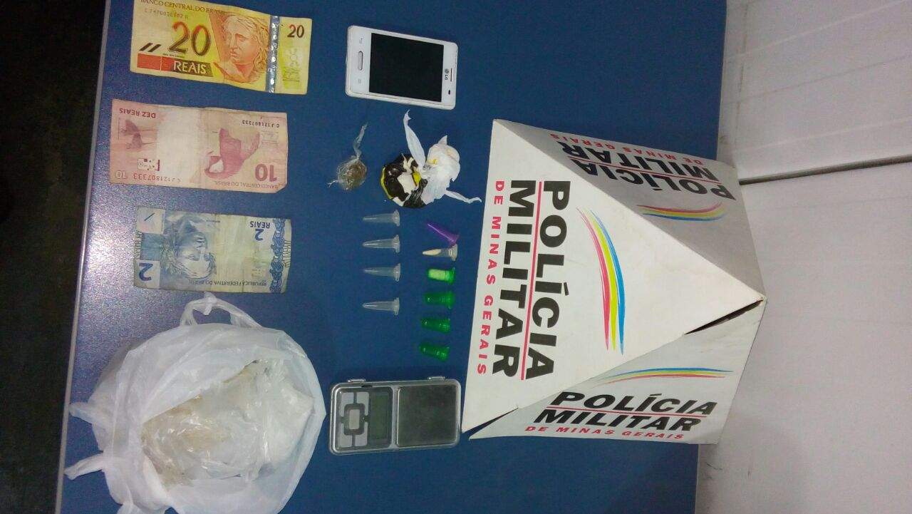Os três suspeitos foram abordados e submetidos à busca pessoal. Com os menores de idade foram encontrados cerca 45 reais em dinheiro, uma bucha de maconha, dois pinos contendo cocaína e um vazio. Com o adulto nada de ilícito foi encontrado.
