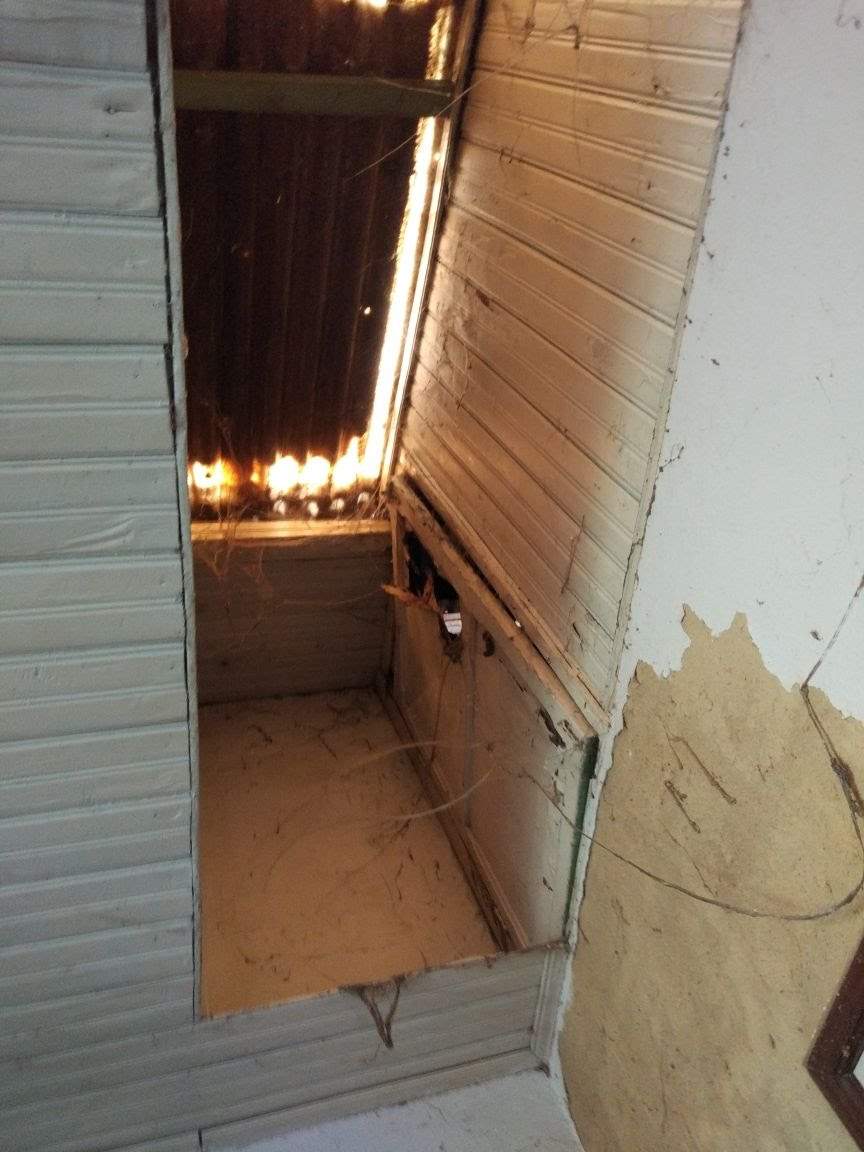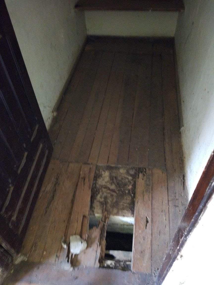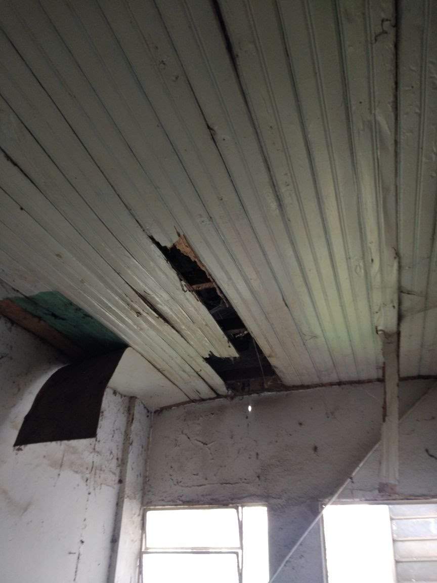 A parte interna do imóvel apresenta rachaduras em algumas paredes e o piso de madeira está podre. “Foi possível observar um deslocamento em uma das paredes. O proprietário do imóvel foi notificado e prontamente se prontificou a tomar as medidas necessárias quanto ao caso e já providenciou escoras para evitar que a fachada do prédio venha a cair e possa ferir alguém”, completa.
