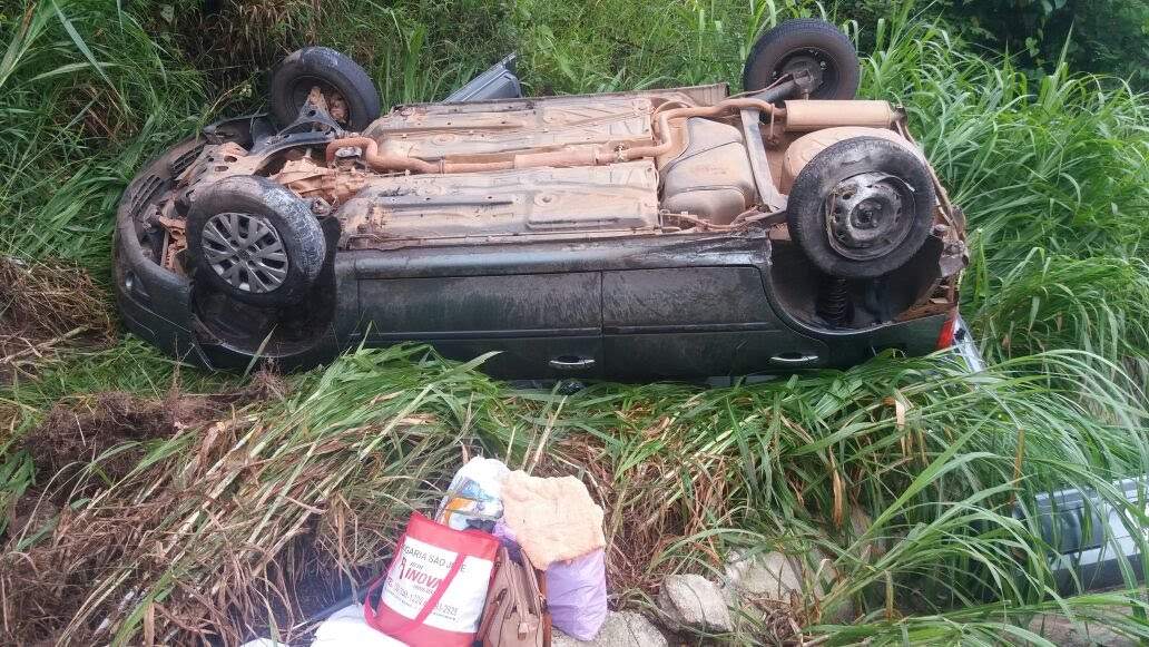 MANHUAÇU (MG) - O Corpo de Bombeiros e a Polícia Rodoviária Federal registraram acidente com capotamento de veículo no km 595 da BR-116, próximo ao acesso de Bom Jesus de Realeza, na zona rural de Manhuaçu. A ocorrência foi às 18:15 desta sexta-feira, 29/12.