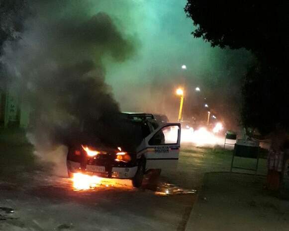 POCRANE (MG) - Uma viatura da Polícia Militar pegou fogo na noite desta segunda-feira, 08/01, em frente ao estádio municipal em Pocrane.
