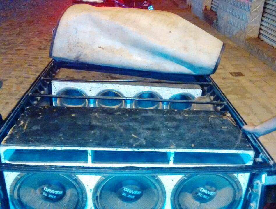 Em virtude do exposto, o automóvel foi removido ao pátio credenciado, juntamente com a aparelhagem de som, a saber: 04 cornetas grandes cromadas, 03 alto-falantes de alta potência, 03 baterias, 04 módulos de potência, 01 aparelho de som e 01 pen drive.