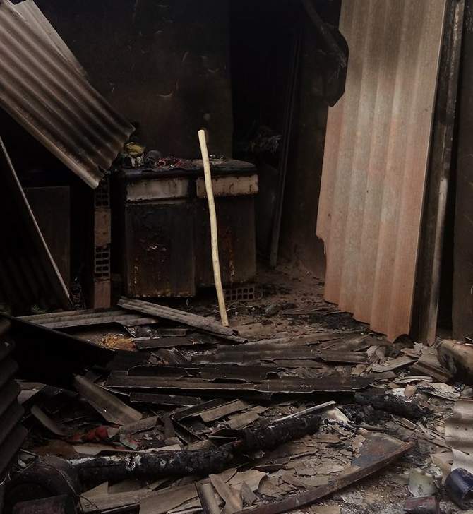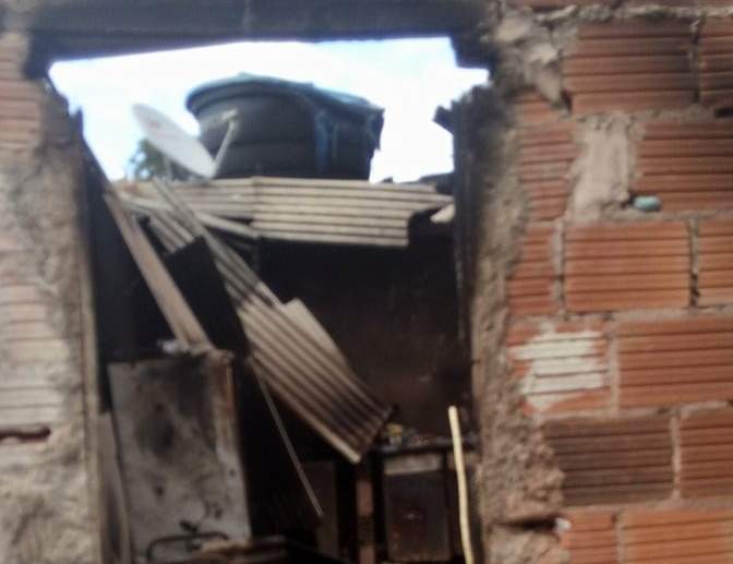 O fogo, que se iniciou num botijão de gás de cozinha, se alastrou rapidamente e destruiu móveis, roupas, alimentos e a estrutura da casa simples dos moradores.