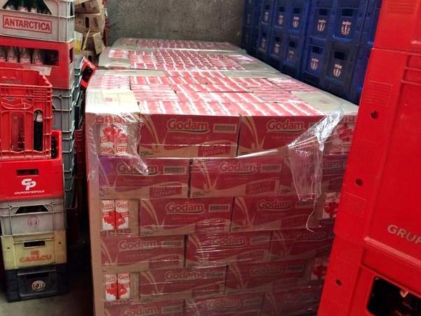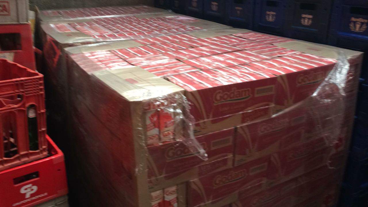 Equipes seguiram para o endereço e conforme a PM, metade da carga de leite foi encontrada no depósito, em meio a engradados de bebidas, onde um dos suspeitos foi detido. Já a outra metade do carregamento, segundo a PM, estava sendo levada pelos outros dois detidos, para Miracema-RJ, em um caminhão.
