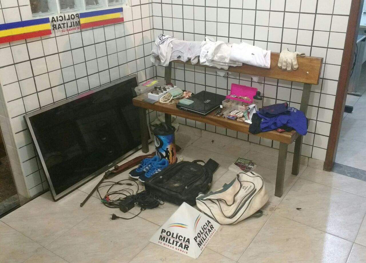 A vítima acionou a PM relatando que ao chegar em casa constatou que a janela do imóvel estava quebrada e que diversos pertences haviam sido levados, dentre eles peças de roupas, calçados, relógios, pulseiras, óculos de sol, uma TV 42 polegadas, cartões bancários e vários outros produtos.