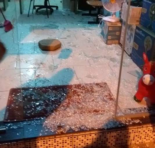 Eles usaram um bloquete do calçamento da rua para quebrar o vidro blindex e invadir o comércio.