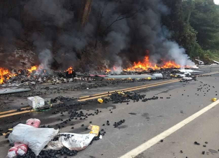 A pista ficou fechada até que o Corpo de Bombeiros apagasse as chamas e o que restou da carga fosse retirada da pista. “Foram quase cinco horas de pista fechada, o congestionamento chegou a mais de 5 km nos dois sentidos da rodovia, mas foi preciso para segurança dos usuários da via e para os Bombeiros concluírem os trabalhos”, completou o PRF.