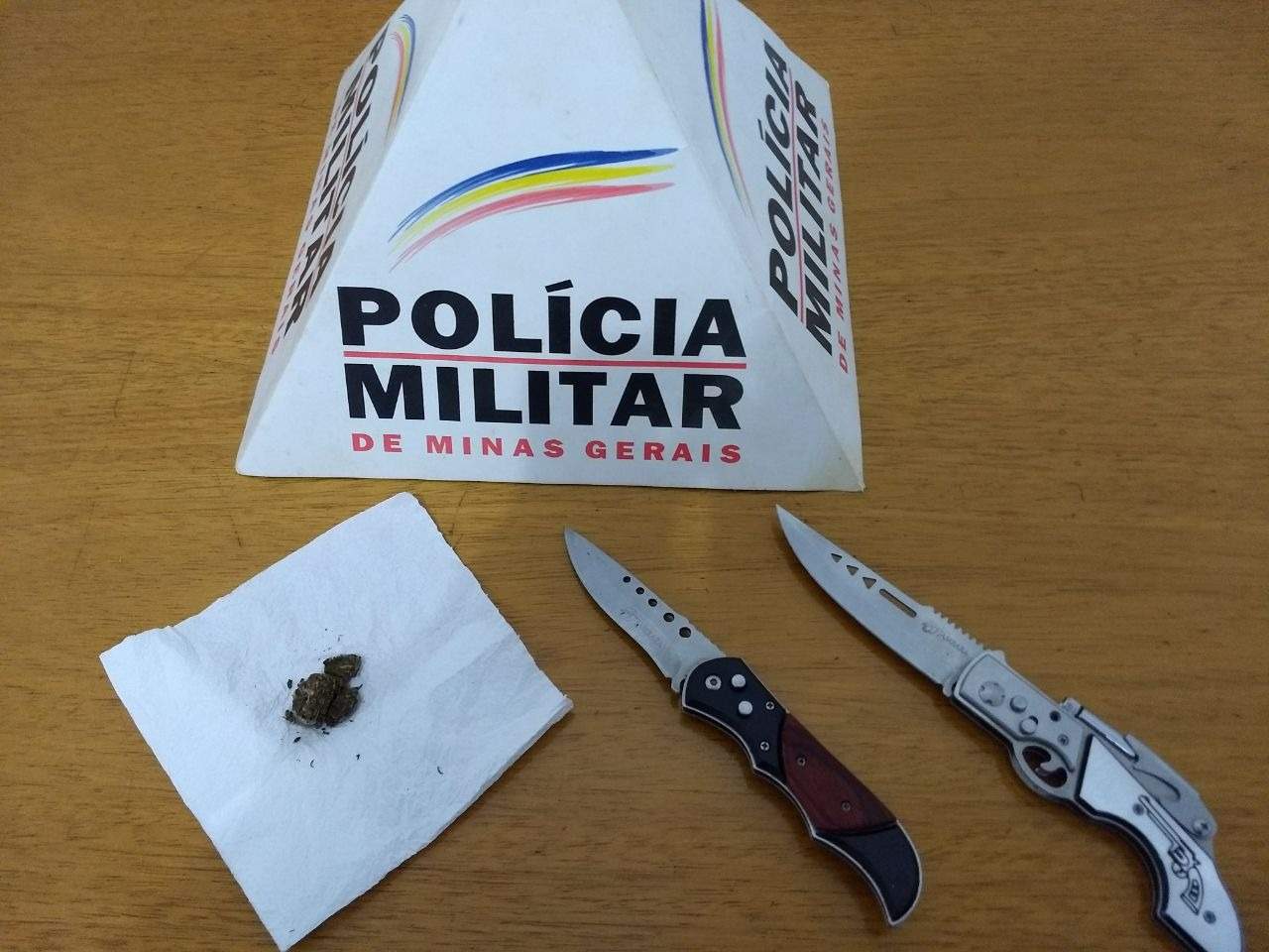 Em um bar da cidade de Matipó, a equipe policial apreendeu uma porção de maconha, um canivete e 420 maços de cigarros contrabandeados, durante verificação de denúncia relativa ao tráfico de drogas. Mais dois canivetes e uma porção de maconha foram apreendidos também com frequentadores de um bar no município de Durandé.