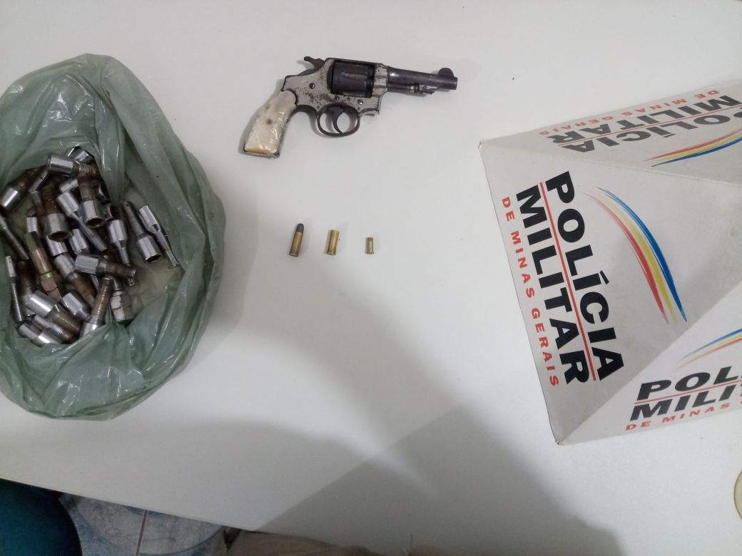 SANTA MARGARIDA (MG) - Um revólver calibre 32 e três munições foram apreendidos pela Polícia Militar no Córrego do Barroso, em Santa Margarida, nesta sexta-feira, 23/02. Ainda foram recuperados vários parafusos de segredo (produtos de furto).