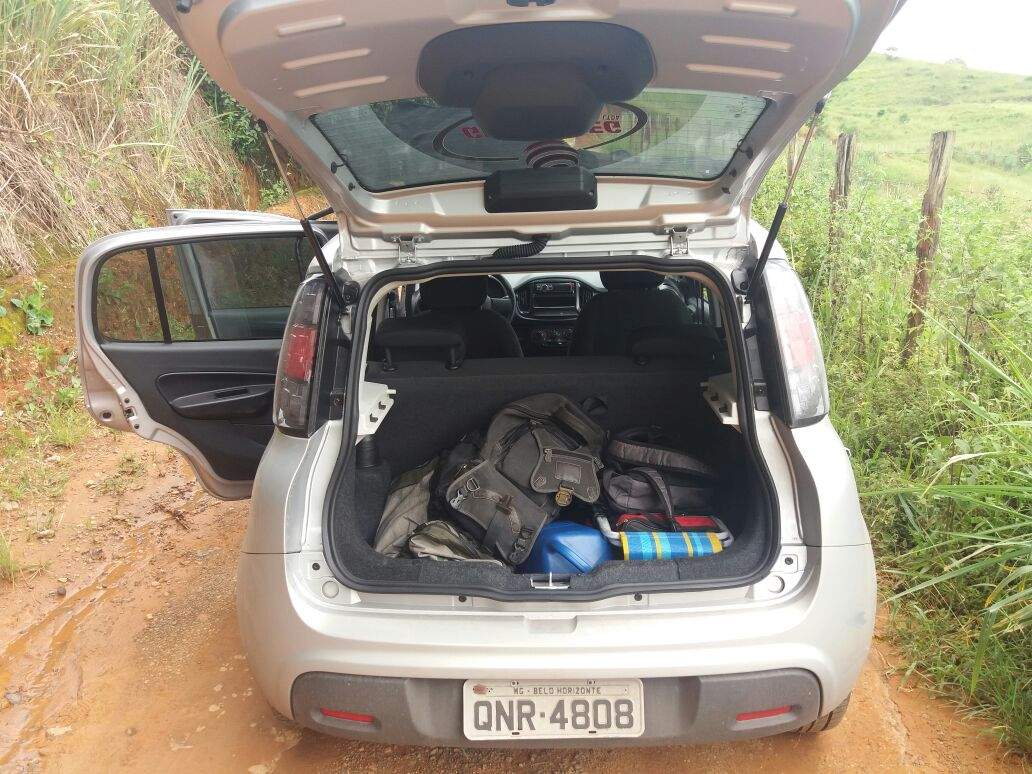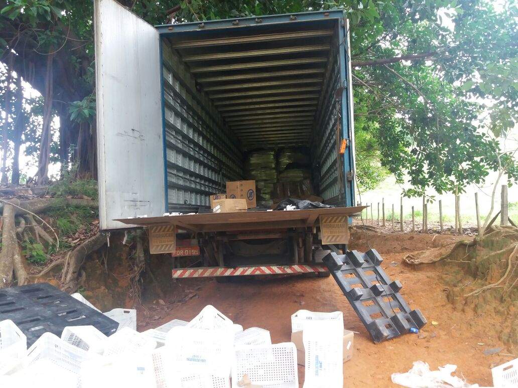 Policiais miliares foram acionados e localizaram, com a ajuda da Polícia de Meio Ambiente, o caminhão numa estrava vicinal. Também estava no local um carro que fazia escolta do veículo de carga.